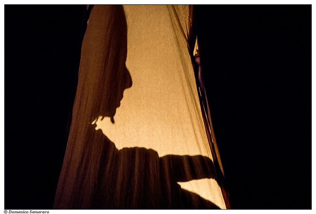 Lo spettacolo ruota attorno a due figure: quella di una creatura coperta di nero, dalle fattezze umane, che abita un luogo notturno e interiore. E quella di una donna, immersa in un sonno profondo che si direbbe infinito. Poi, in un sentore d’allarme, la creatura nera emerge: ci sono delle tracce da seguire e delle voci, vicine e lontane, che si mescolano tra loro. Tra queste, una musica: è una musica che chiede di essere danzata, come il fluire incessante della vita.