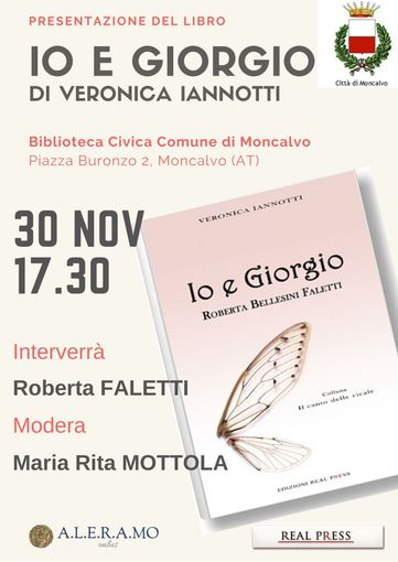 Sabato pomeriggio, alle 17.30, la Biblioteca di Moncalvo (piazza Buronzo, 2) ospiterà la presentazione ad ingresso libero di “Io e Giorgio”, nuovo libro della giornalista e biografa monferrina Veronica Iannotti nel quale la vita di Giorgio Faletti viene narrata attraverso gli occhi della moglie Roberta Bellesini.