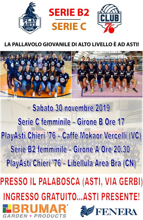 Tutti invitati a sostenere le squadre PlayAsti Club76 in questa giornata di pallavolo di alto livello! Vi aspettiamo, l’ingresso è gratuito.