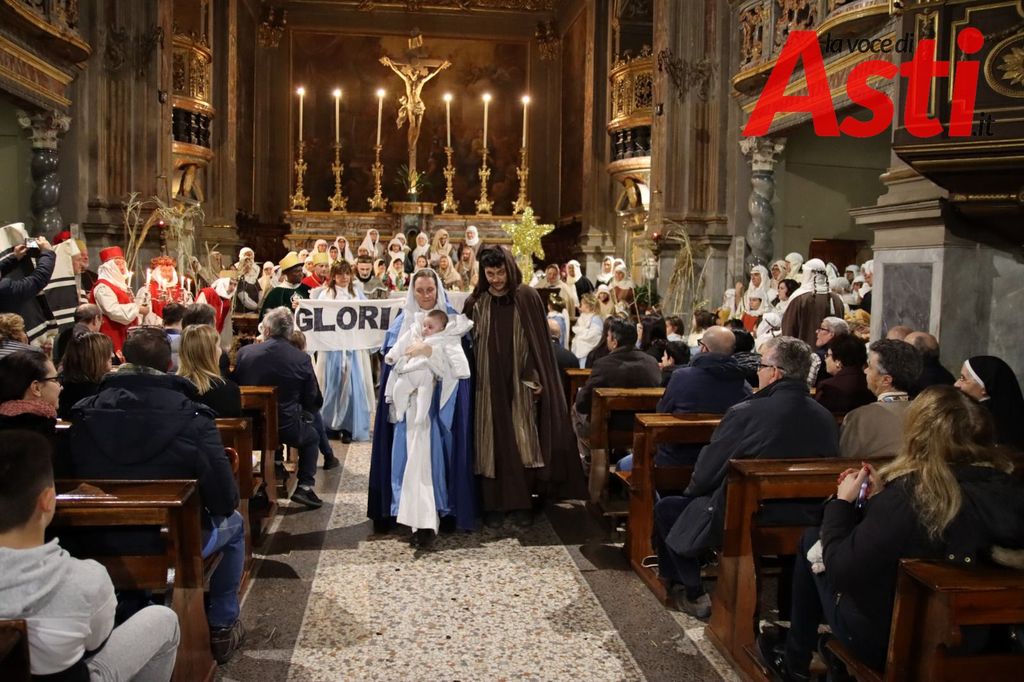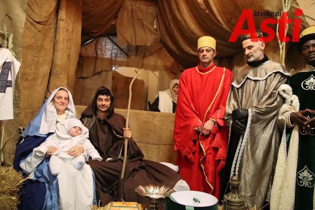 Un'iniziativa frutto di sinergie. Hanno collaborato infatti il coro della parrocchia di San Paolo, il musicista Massimiliano di Carlo, quale zampognaro, i comitati palio Cattedrale, Moncalvo, San Martino San Rocco e Viatosto, e D.V. Costumi e della GSH Pegaso.