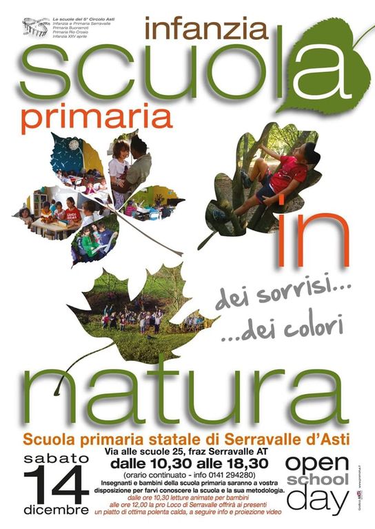 Informazioni e visite alla scuola elementare di Serravalle d'Asti per tutti coloro che desiderano approfondire la realtà di questa piccola scuola aperta al mondo , in cui, spiega l'insegnante Giampiero Monaca "vengono accolti e stimolati la curiosità e l'entusiasmo dei bambini con la loro emotività e voglia a di conoscere motivati dal gioco. Altro pilastro è apertura al mondo, riconoscendo ai piccoli la loro funzione di giovani cittadini cui tocca sin da oggi rendere il mondo piú bello e giusto per tutti".