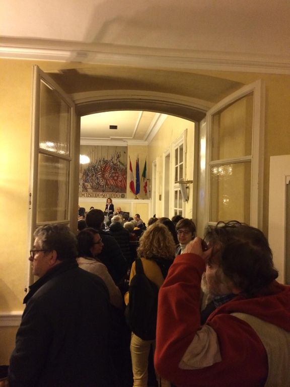 "Sembra un Consiglio aperto" commenta qualche consigliere. Alcuni cittadini sono presenti con striscioni per dissentire dal provvedimento che, dicono, ""riteniamo sia lesivo nei confronti di un ente che da 35 anni promuove la cultura, la memoria, la storia, contrastando la rinascita dell’intolleranza del razzismo".