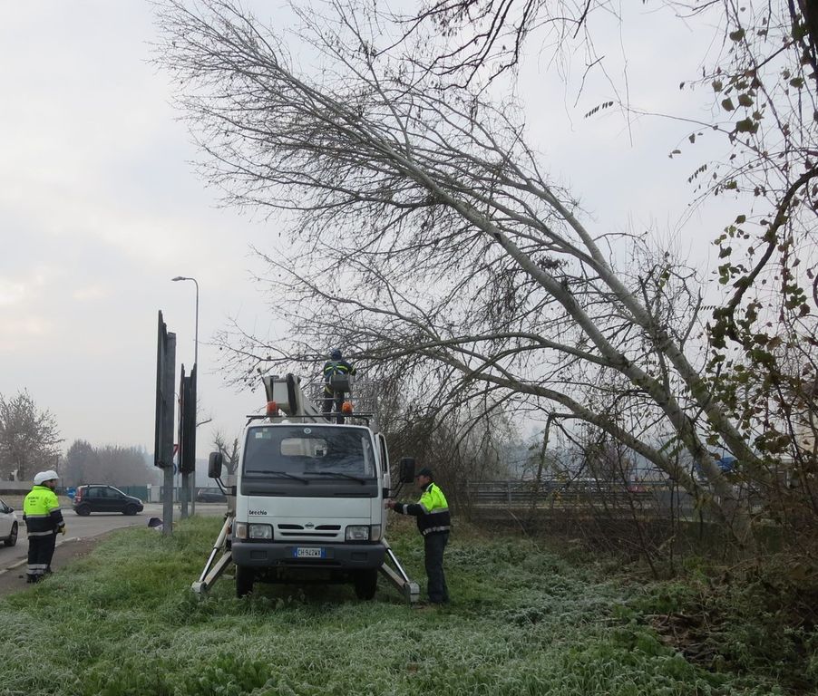 Questa mattina una squadra di sette volontari è stata impegnata presso la rotonda di corso Torino (zona OBI) per abbattere un gruppo di piante molto inclinate, che rischiavano di cadere, causando danni importanti.