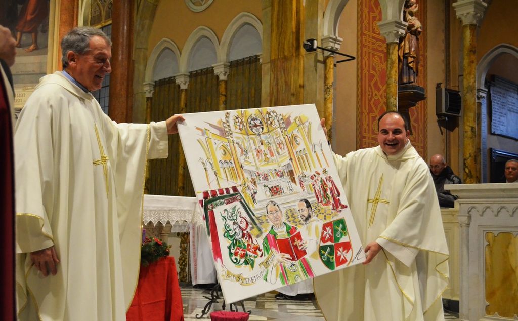 Al termine della celebrazione grande successo per la consegna del dono da parte del Comitato Palio al parroco ed il vice parroco con l’opera siglata su tela dalla maestra d’arte Marisa Garramone che rappresenta la sintesi della forte integrazione comitato palio con la propria parrocchia. All'uscita dalla chiesa, il gruppo di under 20 del comitato ha omaggiato tutti i borghigiani con gadget rosso-verdi e con panettoncini offerti dai commercianti locali.