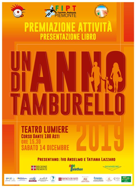 Sabato 14 dicembre dalle 15.30 presso il Teatro Lumière (corso Dante 188) con il Patrocinio della Banca di Asti, si terrà la Premiazione di tutta l'Attività Tamburellistica Open, Muro e Indoor 2019, dalla Serie A ai Campionati Giovanili.