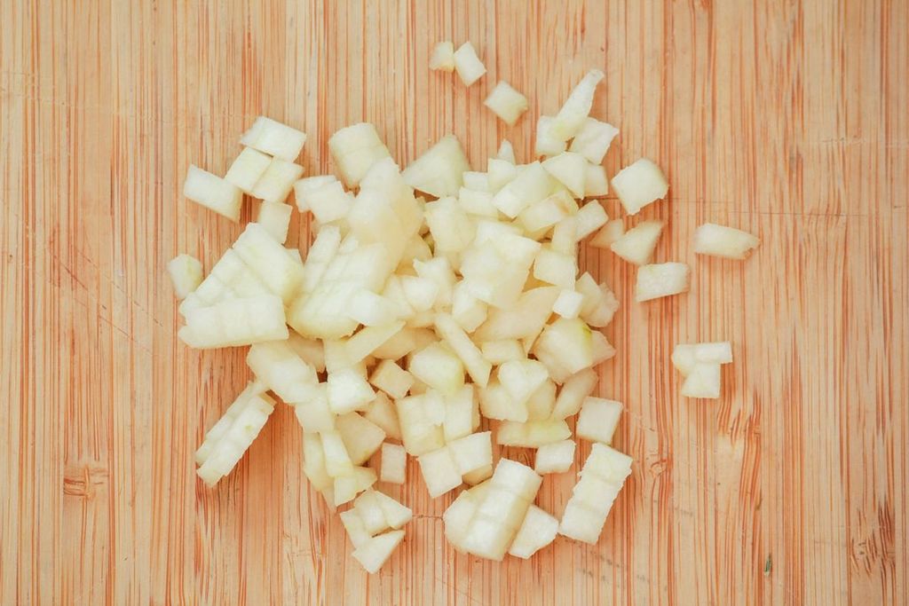 Lavate le pere, pelatele e tagliatele a piccoli pezzetti