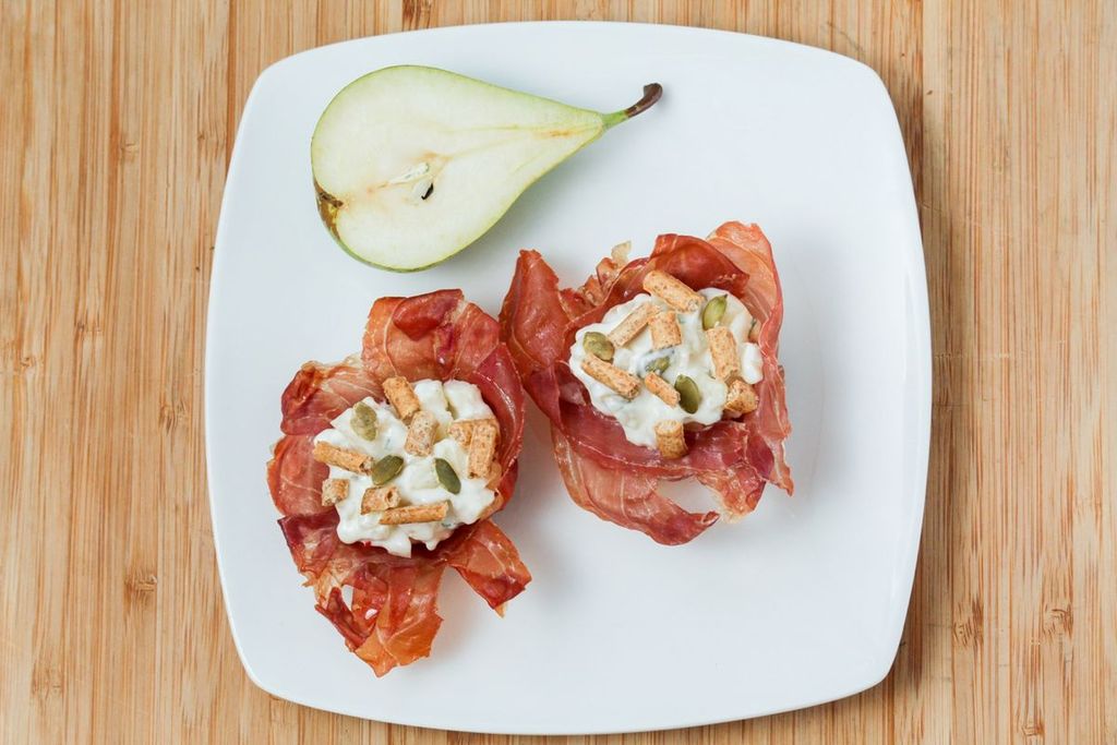 Un secondo veloce e super proteico che sfrutta la polpa aromatica e leggermente acidula della pera Conference in abbinamento al crudo di Parma in versione “cestino”! Tratta dal ricettario inSUPERabile di Fata Zucchina con la pera dell’Emilia Romagna IGP nell’ambito del PSR 2014-2020 della Regione Emilia Romagna (mantenere carattere più piccolo)