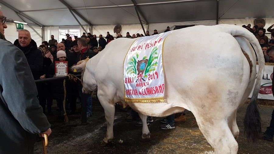 Appartiene a Luigi Carlo Vallino di Marene ed è arrivato primo anche nella categoria "buoi grassi migliorati" davanti all'animale dei fratelli Delsoglio di Fossano e a quello di Renato Cogno di Carrù.