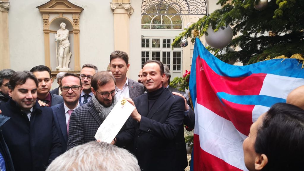La richiesta di autonomia differenziata della Regione al Governo, come regalo di Natale, appeso all'albero di Palazzo Lascaris. È questo il "dono simbolico" contenuta in una cartellina bianca con fiocco rosso, sottoscritta dai capigruppo regionali di maggioranza, che il presidente Alberto Cirio ha collocato sull'albero dopo l'approvazione del provvedimento in mattinata del Consiglio Regionale.