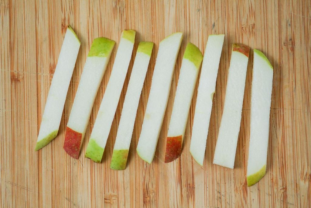 Lavate bene le pere mantenendo la buccia e tagliatele a bastoncini.