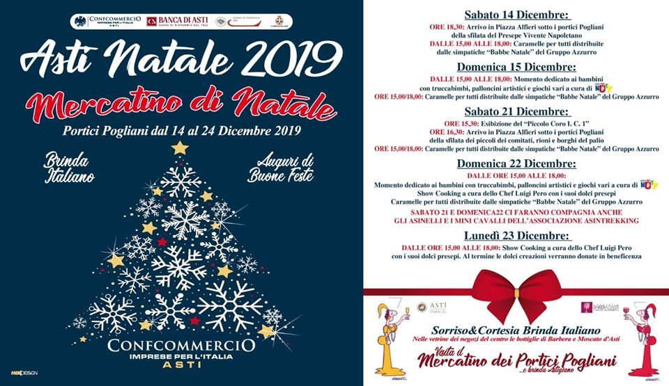 Asti Natale 2019, i mercatini allestiti da Confcommercio sotto i Portici Pogliani stanno per congedarsi e domani, lunedì 23 dicembre, ospiterano un momento particolare.