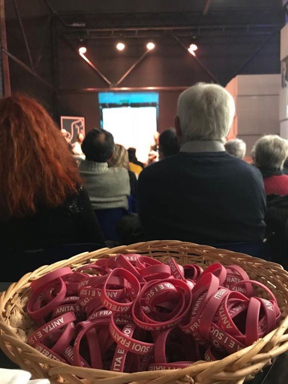 Sala gremita e silenziosissima per ascoltare le parole di mamma Chiara e papà Daniele con le letture di Simona Graziano e Riccardo Longo per la regia di Mario Bois.
