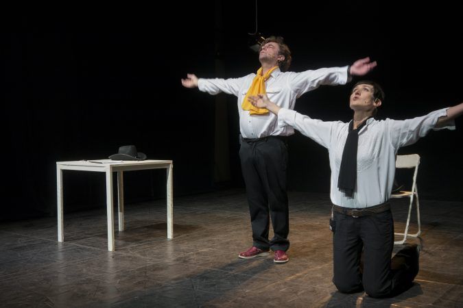 Due cow-boy, poi improbabili danzatori, o forse solo due esseri in bilico ai limiti del paradosso. Sui margini di questo confine si pongono le due figure in scena, attraversando ciò che necessita di essere ripensato, dal rapporto con la morte a quello con la bellezza, dal senso del teatro alla sua relazione con lo spettatore. “Dove si colloca oggi il teatro contemporaneo – si chiedono i protagonisti – in quale organo del corpo sociale? Nella mente o nello stomaco, in attesa di essere digerito? O tenta acrobaticamente una sintesi che appaghi l’una e l’altra istanza?”.