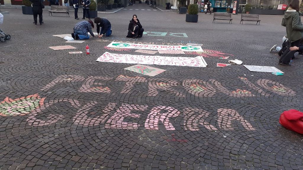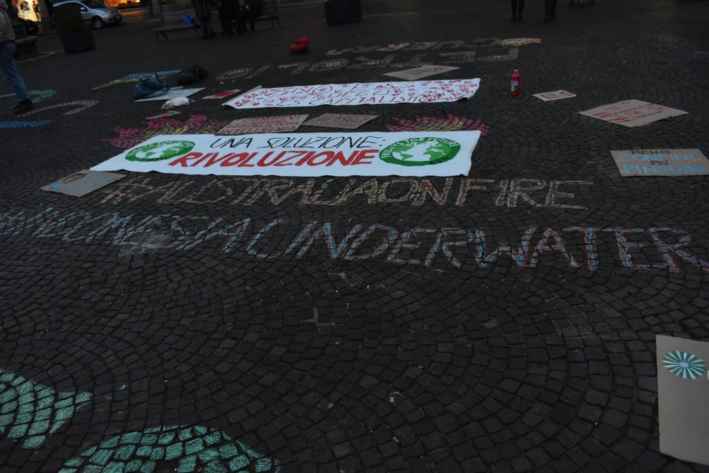 Nel corso del presidio è stato fatto anche un minuto di silenzio in ricordo delle vittime del clima.