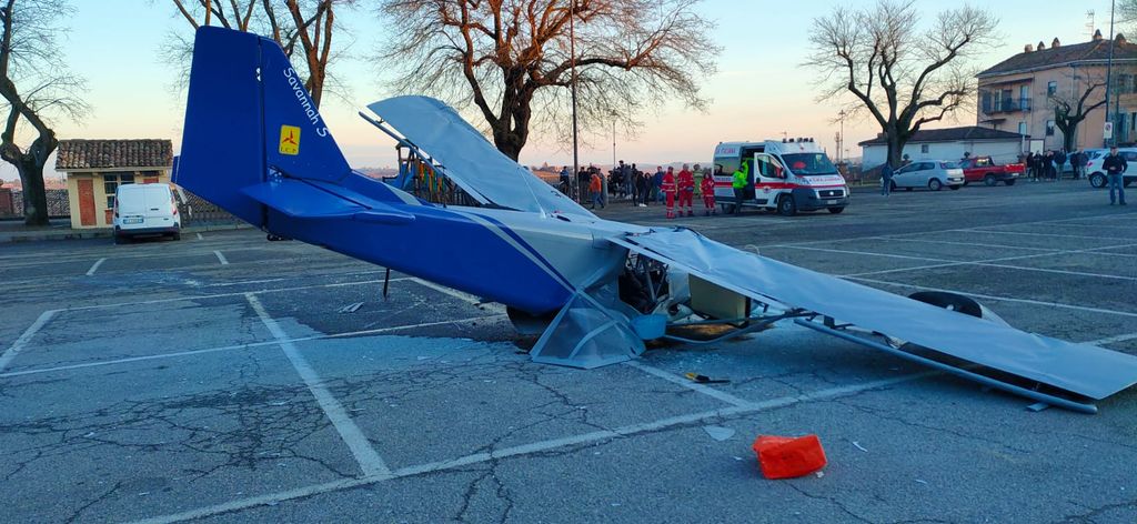 L'ultimo volo di Lino Frigo si è concluso nella piazza della sua Moncalvo. La tragedia ieri pomeriggio