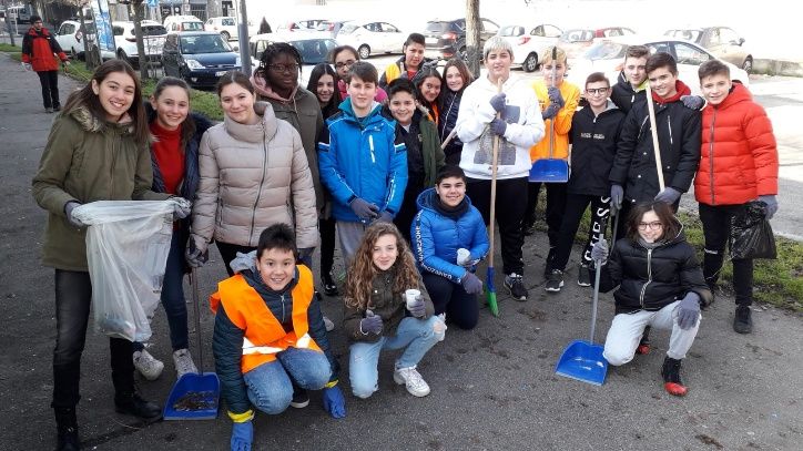 Ogni venerdì, a mezzogiorno, dal mese di novembre, una classe esce dalla propria aula e si dedica alla pulizia dei marciapiedi e dei parcheggi che si trovano nelle immediate vicinanze della scuola media Jona.