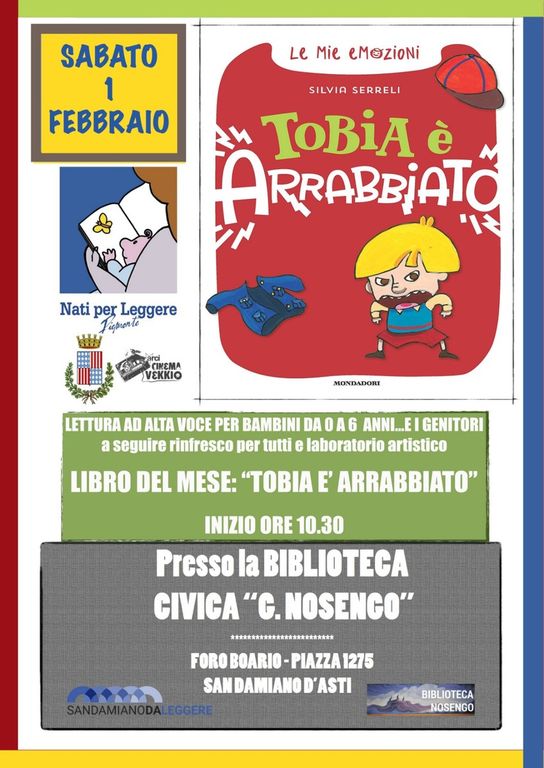 Domani, sabato 1 febbraio, alle 10.30 nella biblioteca civica "G. Nosengo" di San Damiano d'Asti arriva "Tobia è arrabbiato", libro per bambini di Silvia Serreli.