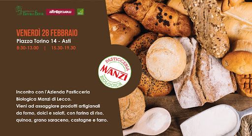 Venerdì 28 febbraio per tutta la giornata il supermercato Naturasì della Coop. Della Rava e Della Fava di Asti ospiterà un nuovo produttore: la Bio Pasticceria Manzi di Lecco, che presenterà la linea salata e dolce di propria produzione.