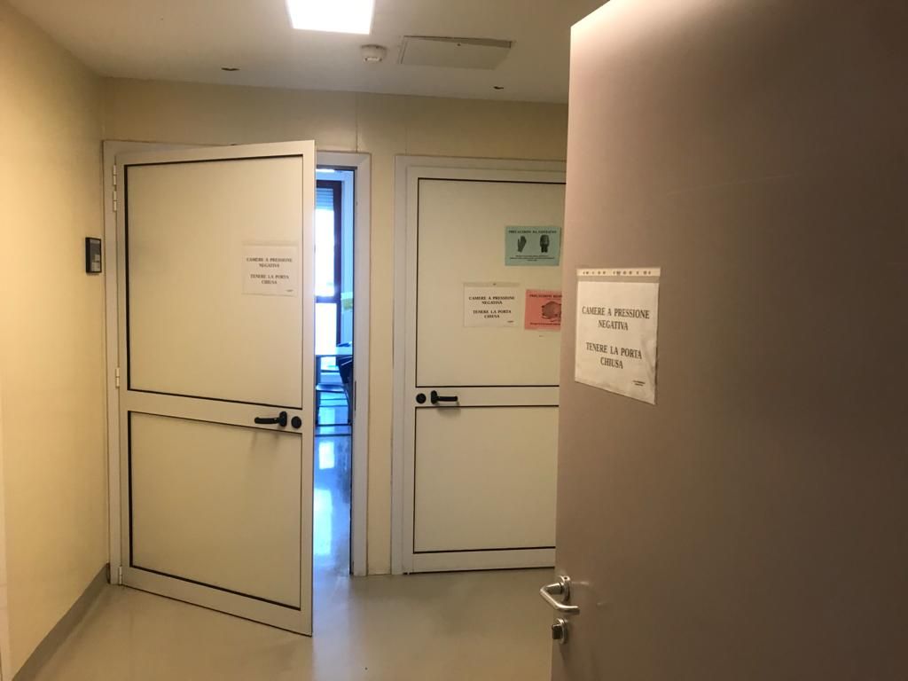 L'accesso alle stanze "a pressione negativa" del reparto Malattie Infettive del Massaia e nella foto a fine articolo una delle stanze