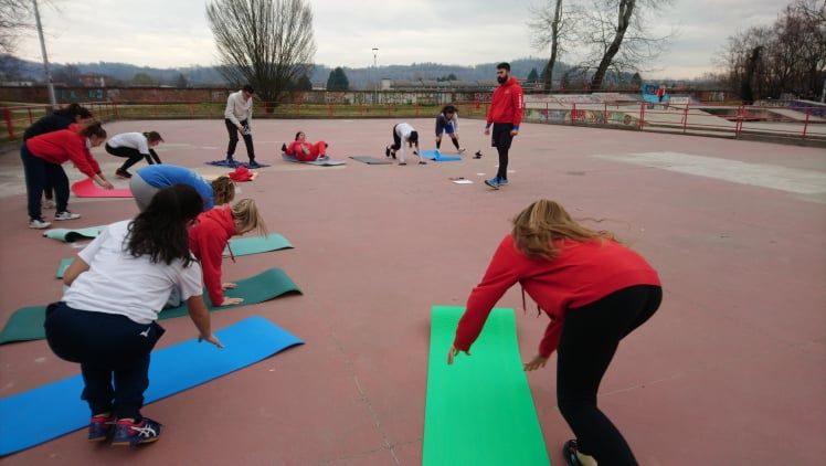 Trattandosi di pallavolo il mister aggiunge ironicamente "Noi il virus lo schiacciamo così" e con Roberto Bifulco, preparatore atletico, ed Enrica Boggero, vice allenatore, hanno portato le ragazze al Parco Lungo Tanaro.