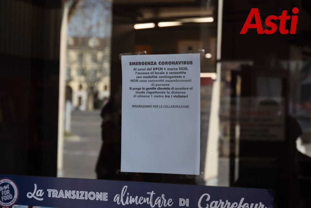 Mentre questa mattina alle 9 il sindaco di Asti arrivava in Prefettura per un primo incontro, i bar iniziavano a fare i conti con le nuove disposizioni. Qualcuno ha appeso un cartello chiedendo agli avventori collaborazione "affinché siano evitati assembramenti e garantita la distanza minima". Al bar La Piazzetta di piazza Primo Maggio, il titolare fa i conti con diversi giorni di ripercussioni sul proprio lavoro e una perdita di almeno il 20 per cento in meno.