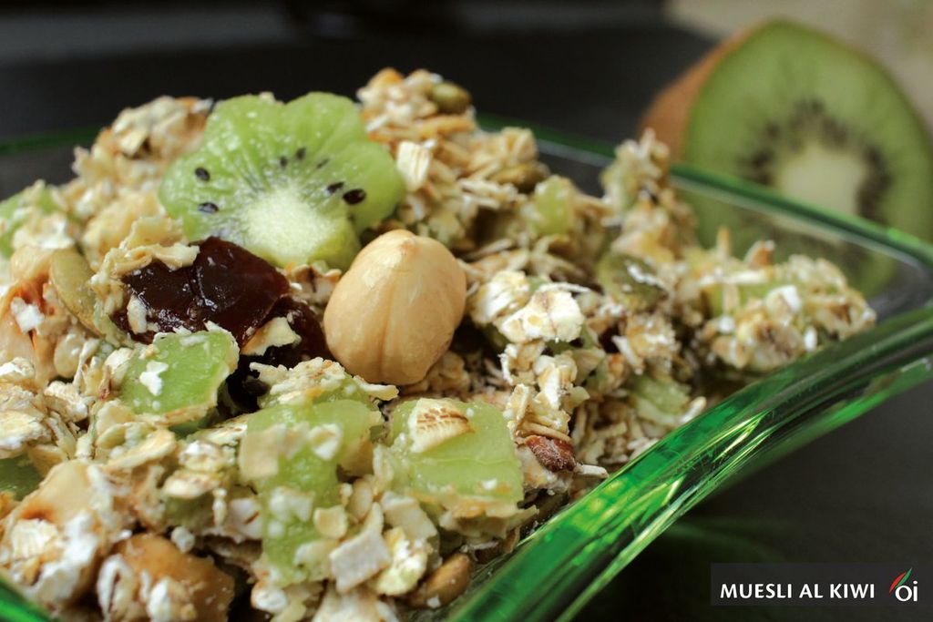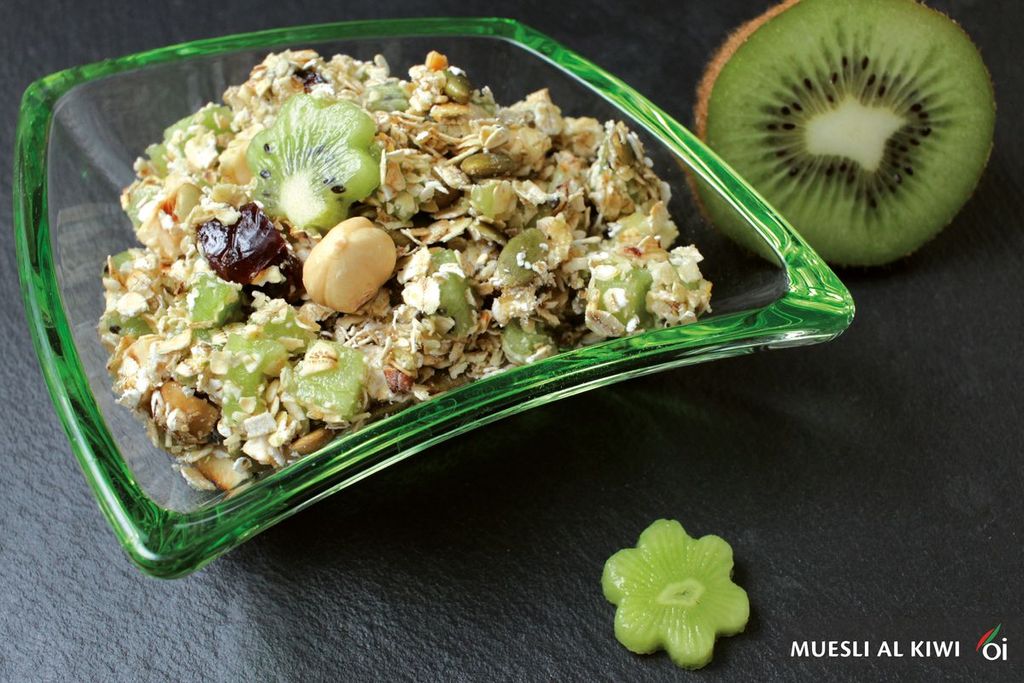 Pochi cucchiai di questa miscela sono un ottimo modo per iniziare la giornata con una colazione nutriente, leggera e al tempo stesso energizzante. Gli ingredienti di questo muesli genuino e veloce, infatti, cooperano al meglio tra di loro per il nostro benessere: la vitamina C del kiwi ci aiuta ad assorbire al meglio il ferro delle nocciole e la sua dolcezza non rende necessaria l'aggiunta di zucchero.