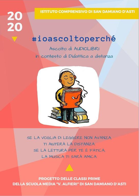 Partirà quindi per le classi prime #ioascoltoperchè, l’iniziativa di ascolto di audiolibri che le insegnanti di Lettere hanno selezionato per i loro studenti scegliendo alcuni titoli che si augurano possano essere graditi. Ogni giorno, dal lunedì al venerdì, i ragazzi riceveranno una “puntata” del libro letto da attori professionisti e accompagnato da brani musicali che riempiranno lo spazio e il tempo che, in queste ultime settimane, sono rimasti forse un po’ vuoti. Alla lettura seguiranno attività varie da svolgere in tutta serenità e spirito di condivisione.