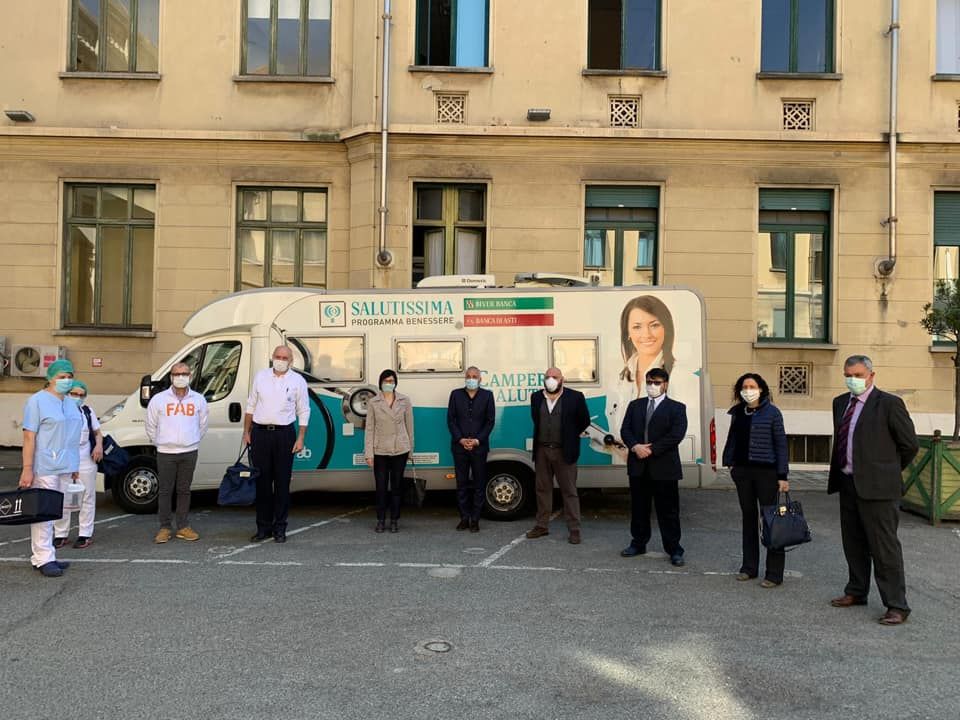 Il Fondo assistenza e benessere (Fab SMS) ha offerto, in comodato d’uso gratuito, alla Regione Piemonte uno dei suoi Camper della salute per aiutare i sanitari ad effettuare i tamponi Covid-19 presso le RSA. Questa mattina, il camper è giunto davanti alla Città della Salute di Torino, dove l’assessore al Welfare, Chiara Caucino e il vicepresidente della Regione Piemonte, Fabio Carosso, hanno accolto la presidente dell’associazione Fab SMS, Marcella Borsani.