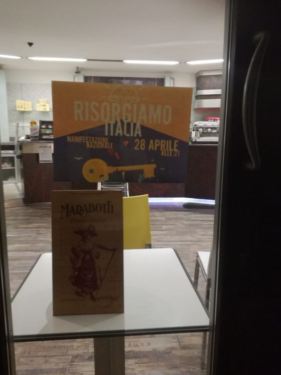 L'iniziativa "Risorgiamo Italia" ieri sera alle 21 ha visto accendere per protesta le insegne dei locali che hanno anche preparato con cura tavoli per clienti che non ci sono da ormai quasi due mesi.