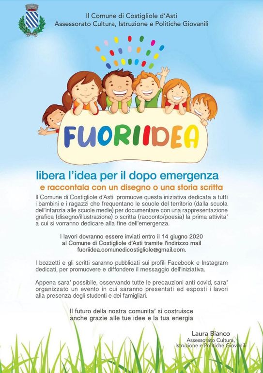 "Il progetto 'Fuori Idea', conclude l'assessore, sarà inoltre per la nostra comunità, una testimonianza che il virus non ha intaccato la riserva di creatività dei bambini, ai quali è stato chiesto un enorme sacrificio, un cambio di passo, non più padroni del loro territorio di esplorazione e costretti a vivere in uno spazio limitato, confinato in questi giorni così tristi e complicati, che in un futuro potrà essere richiamata ad esempio".