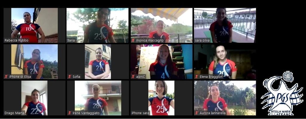Le ragazze della under18 della Stella Maris di Villafranca d’Asti, fra un allenamento da remoto e l'altro (sono alla decima settimana, senza mai mollarne una) posano per una foto di gruppo con la divisa di gioco: “lontane ma vicine”, sognando il ritorno in campo. Coordinate dalla conduzione tecnica ed atletica dai coach Massimo Mariani ed Enrica Boggero.