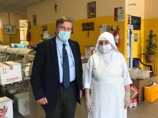 In ottemperanza delle norme di distanziamento fisico dettate dalla necessità di contenere la diffusione del Covid-19, tra le quali rientra anche il non poter servire pasti in modo diretto per evitare affollamenti, anche la Mensa Sociale di via Genova, gestita dalle Suore della Pietà nell'ambito delle attività istituzionali dell'Assessorato alle Politiche Sociali del Comune di Asti, ha dovuto adeguarsi distribuendo pasti in contenitori preconfezionati di generi alimentari e in modalità “take away”.