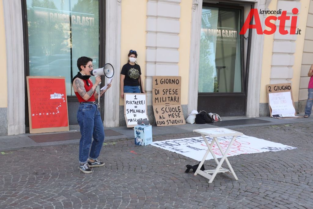 Sono i conti presentati oggi pomeriggio in piazza Libertà ad Asti dai manifestanti del Laboratorio Autogestito "La Miccia" di Asti, l'Assemblea Antimilitarista di Torino e la Federazione Anarchica Torinese.