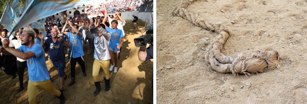 Ma sarebbe davvero ipotizzabile un Palio senza l’allegria delle cene propiziatorie, privo della sfilata storica (impensabile immaginare i figuranti sfilare con mascherine e guanti monouso) e senza pubblico e borghigiani a sostenere i propri colori?