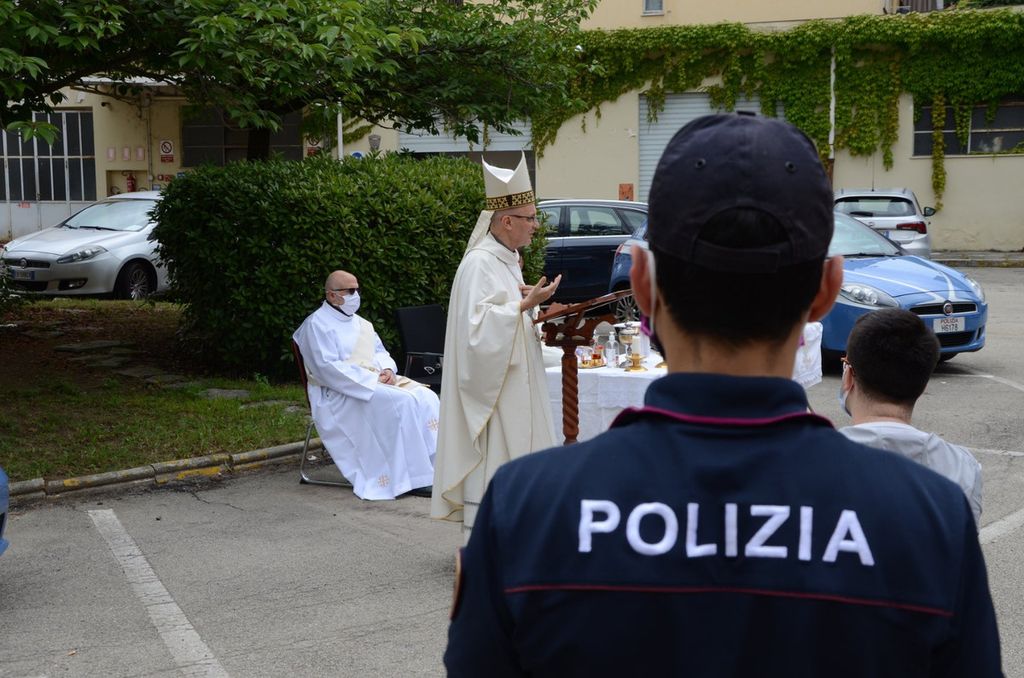 Celebrata la messa nel cortile della questura di Asti