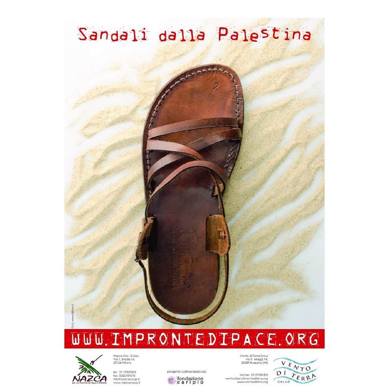 Anche i sandali in cuoio palestinesi sono riusciti da arrivare a destinazione : le Botteghe del mondo italiane; ad Asti presso la Bottega Rava e Fava di via Cavour 83.