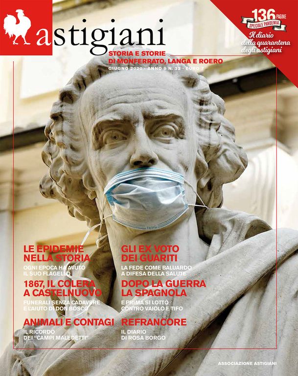 "Questo Astigiani è speciale per molti motivi - spiega il direttore Sergio Miravalle - Le sue 136 pagine sono interamente dedicate alla drammatica emergenza causata dal Coronavirus. Abbiamo pensato a un menabò che raccontasse, nella prima parte, la storia della precedenti pandemie: dalla peste al colera, dalla terribile Spagnola al vaiolo. I nostri autori hanno compiuto ricerche sul territorio e messo in rilievo aspetti storici, culturali, agricoli, religiosi. Sono riemersi diari e memorie. Ci sono curiosità sorprendenti".