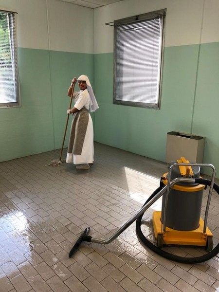 I volontari hanno lavorato molto per sanificare, ritinteggiare i locali, realizzare un magazzino per le derrate e il bagno per disabili.