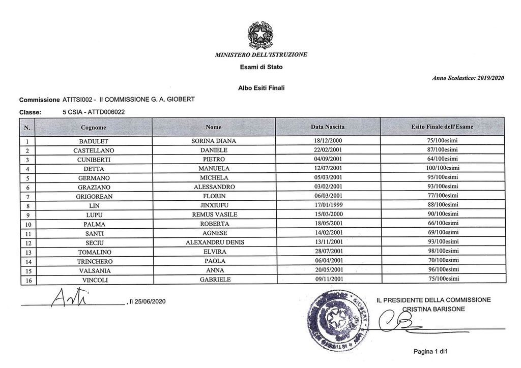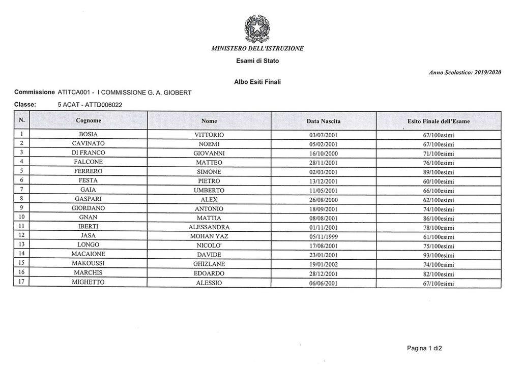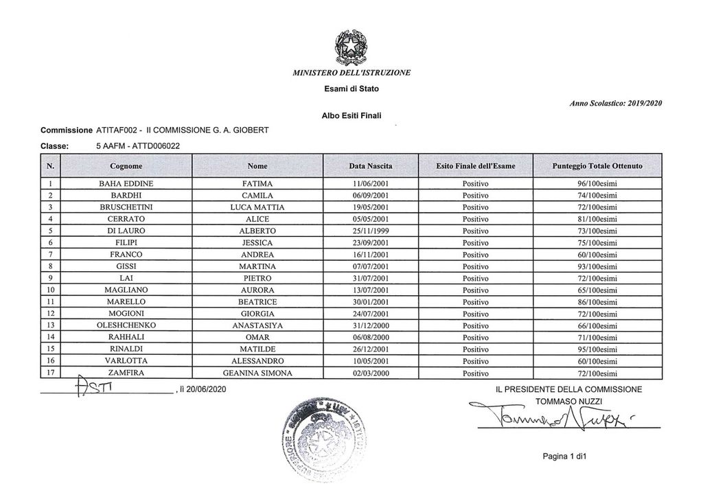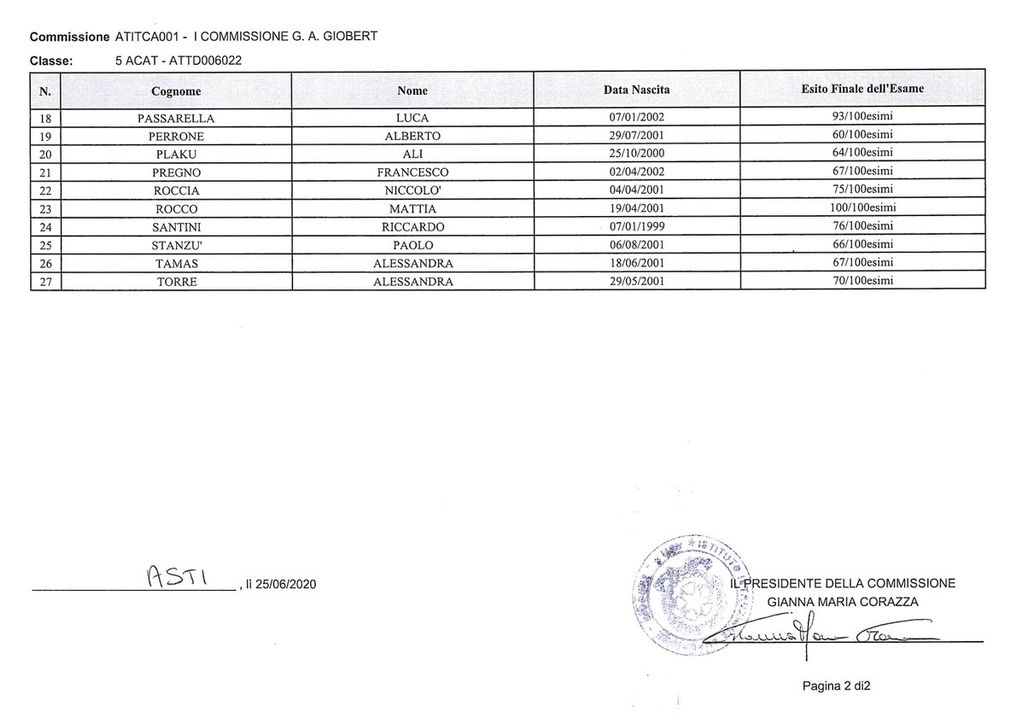 Cinque i 100/100: Mattia Rocco, Martina Albarello, Alessia Lano, Letizia Raviola e Manuela Detta. Nessuna lode.
