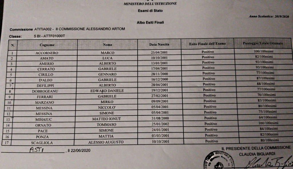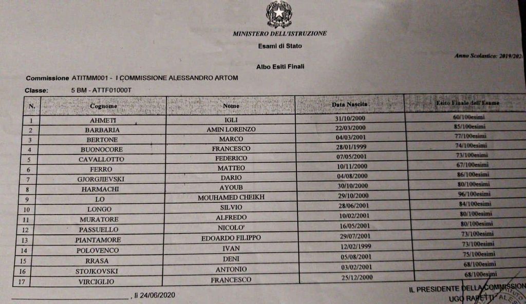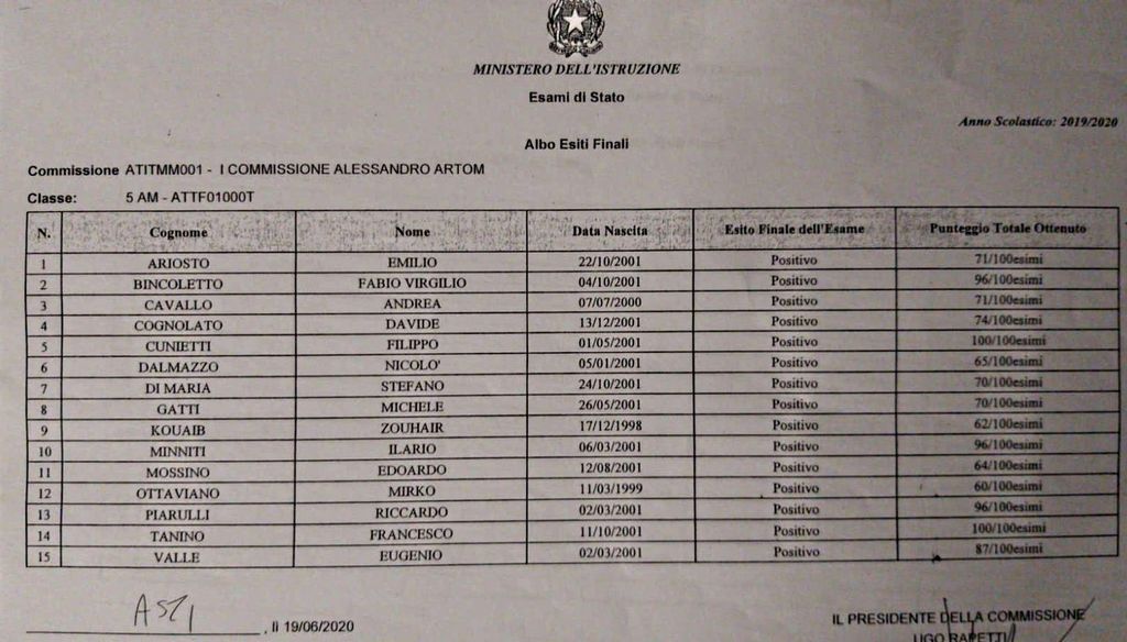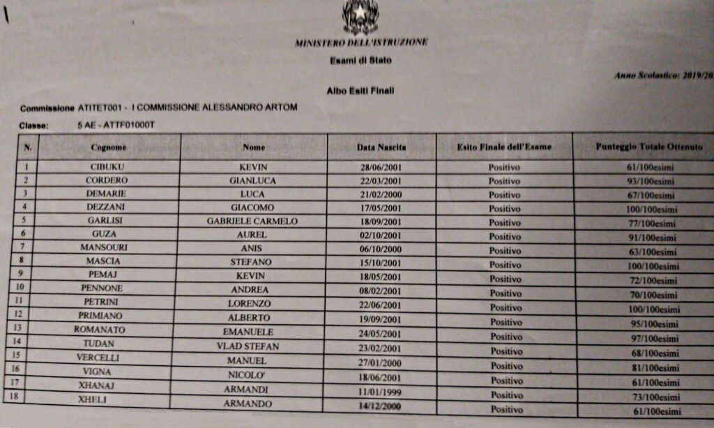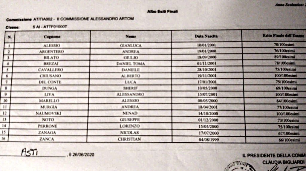 Si sono conclusi gli esami di Maturità 2020 anche degli allievi dell’Istituto Artom di Asti.