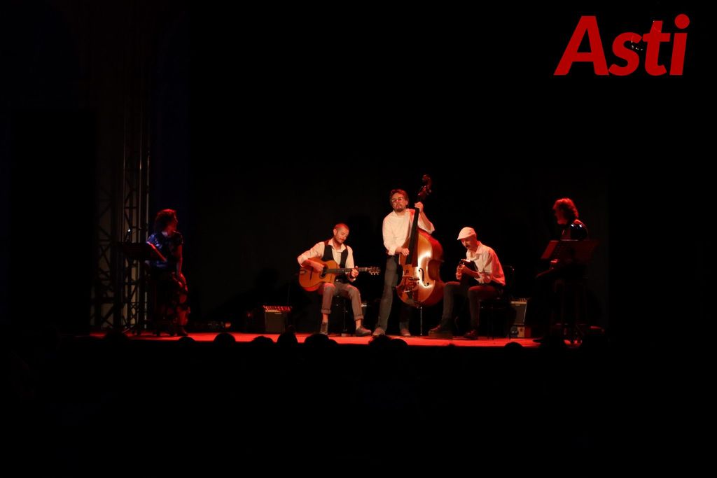 Ieri sera, martedì, si è svolta la prima serata di teatro nella splendida cornice del cortile di Palazzo Michelerio, con "D’ARTE e d’AMORE”, recital di parole e musica con Ileana Spalla, Sergio Danzi e i Collectif Manouche, ensemble di swing con i chitarristi Beppe Rosso e Stefano Ferreno e il contrabbassista Simone Barbiero.