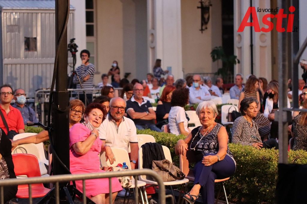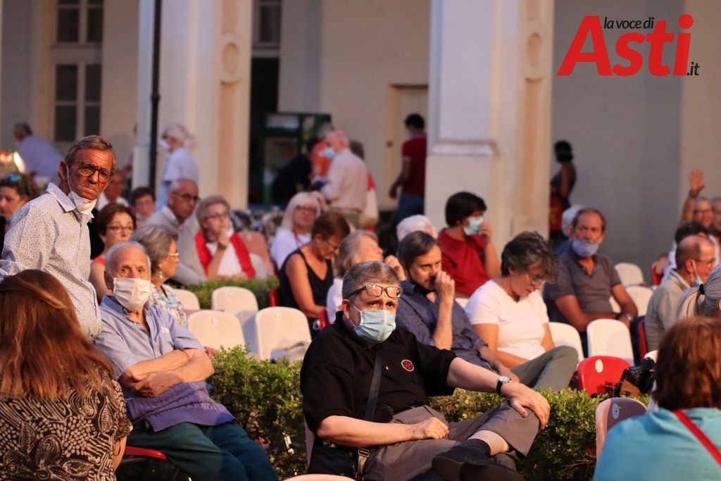 Tutto esaurito ieri per lo spettacolo "Canzoni al ratafià", omaggio in musica e parole a Paolo Conte, nella splendida cornice del cortile di Palazzo Michelerio.