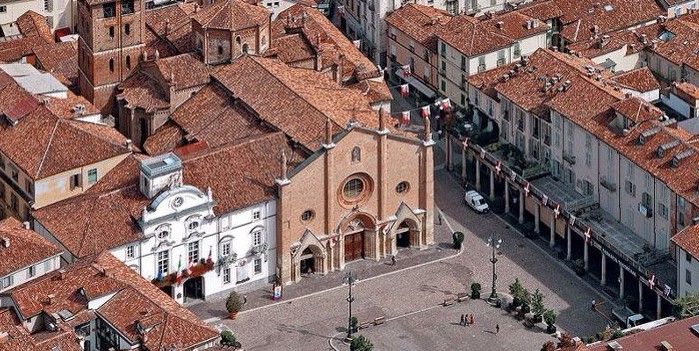 Eccoci in Cattedrale, la sua è una storia antica che parte dal V secolo per arrivare all’attuale costruzione con il campanile romanico della seconda metà del ‘200 e l’imponente chiesa in stile gotico, finita nel 1354. Grandioso l’interno, ricco di opere antiche come due acquasantiere, una longobarda e l’altra tardo medioevale, poste su capitelli corinzi del III secolo; e poi tanta arte; quattro formidabili dipinti del grande Gandolfino, maestro astigiano del ‘500, una Resurrezione del Moncalvo, un gruppo di sculture in terracotta che rappresenta la Deposizione, datato 1502, affreschi di Gian Carlo Aliberti e la spettacolare opera scultorea di Tommaso Groppa, fine ‘600, in rame dorato raffigurante la Madonna. Tra le varie ricche cappelle laterali anche quella dove è sepolta la madre di Vittorio Alfieri, Monica Maillard de Tournon. Persino panche e sedute sono eccezionalmente interessanti, ancora in gran parte marchiate con gli antichi stemmi nobiliari dei proprietari. Usciti, d’obbligo un giro in due musei a due passi: quello Diocesano, dove è esposto parte del tesoro del Duomo, assieme ad un paio d’opere del prolifico Gandolfino, e il Museo del Palio, anche lui sacro per molti, a Palazzo Mazzola.