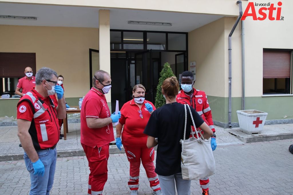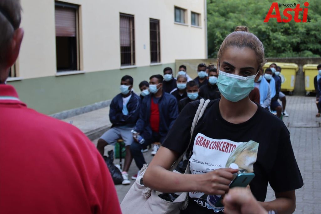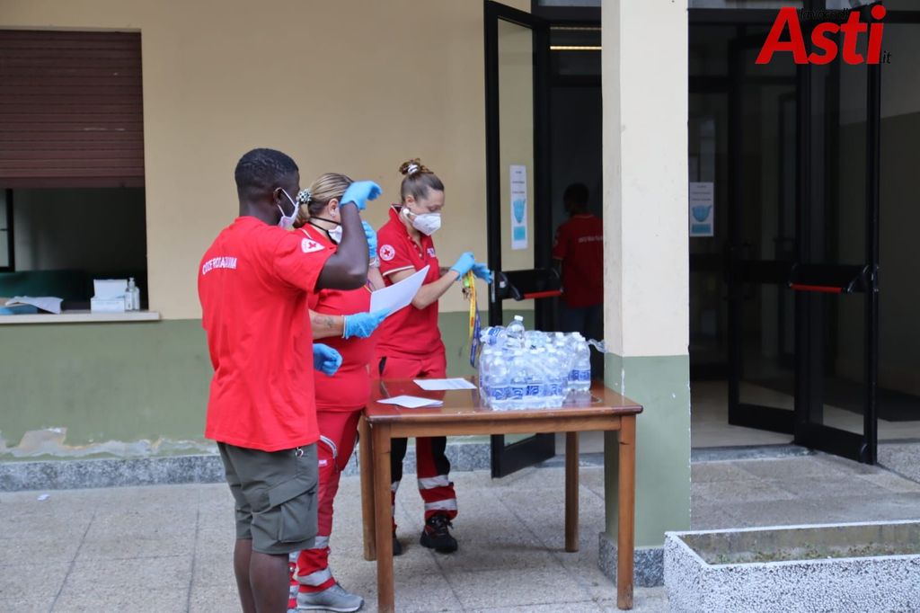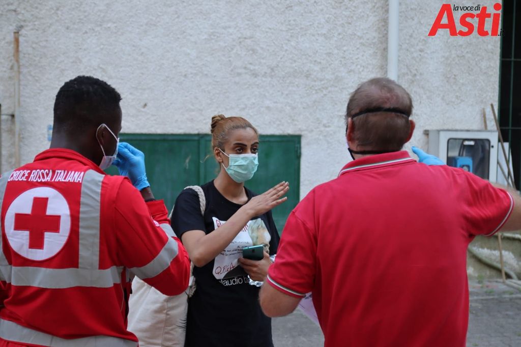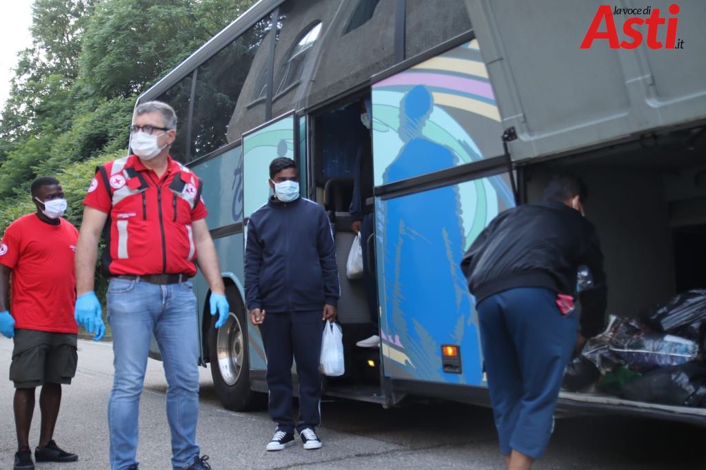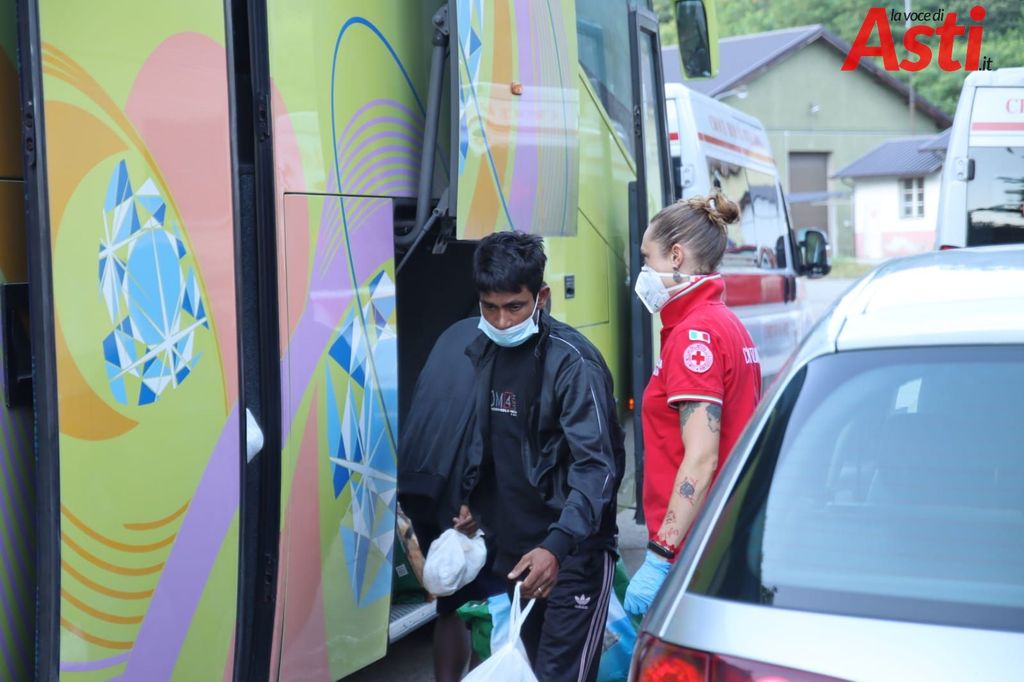 Ad accoglierli e rifocillarli lo staff della Croce Rossa, terminata la quarantena saranno smistati in centri di accoglienza del Piemonte. Arrivano dal Bangladesh. Solo una ragazza tra loro