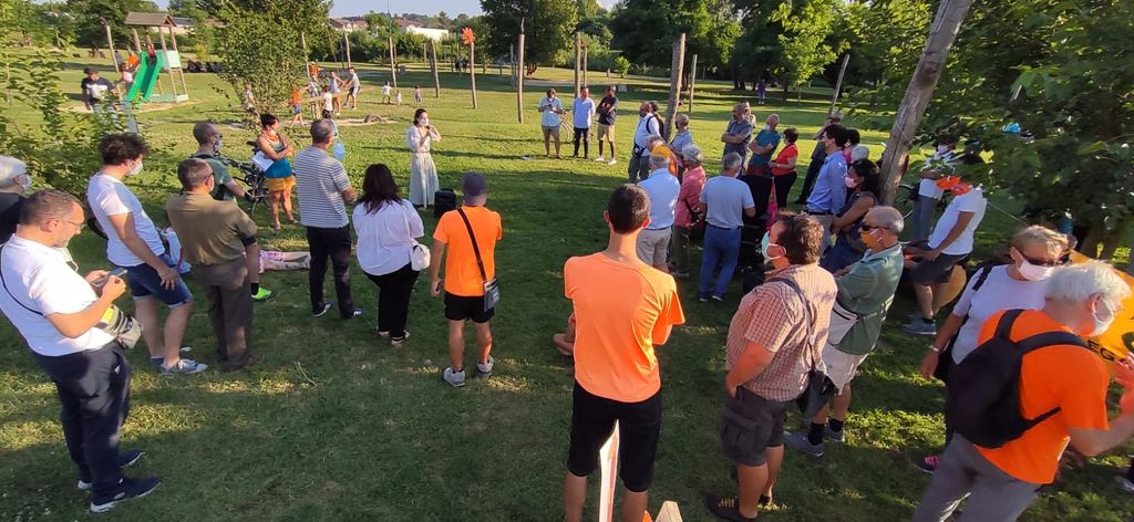 All'arrivo al "Parco Pastrone" lungo Borbore, ad aspettare la colorata comitiva c'era un ancor più nutrito gruppo di cittadini e rappresentanti di associazioni di vario genere. Con il coordinamento della Rete Asti Cambia, si è dato spazio a diversi interventi, tutti seguendo il filo conduttore della mobilità.