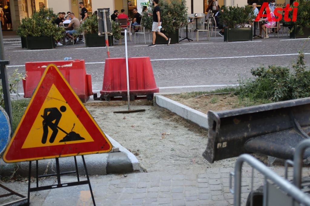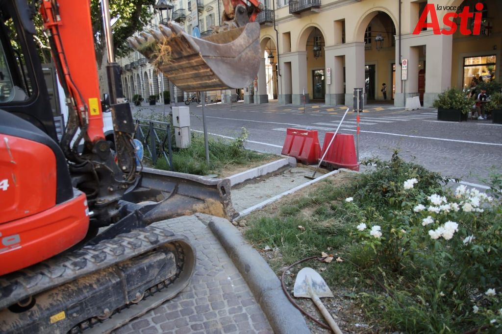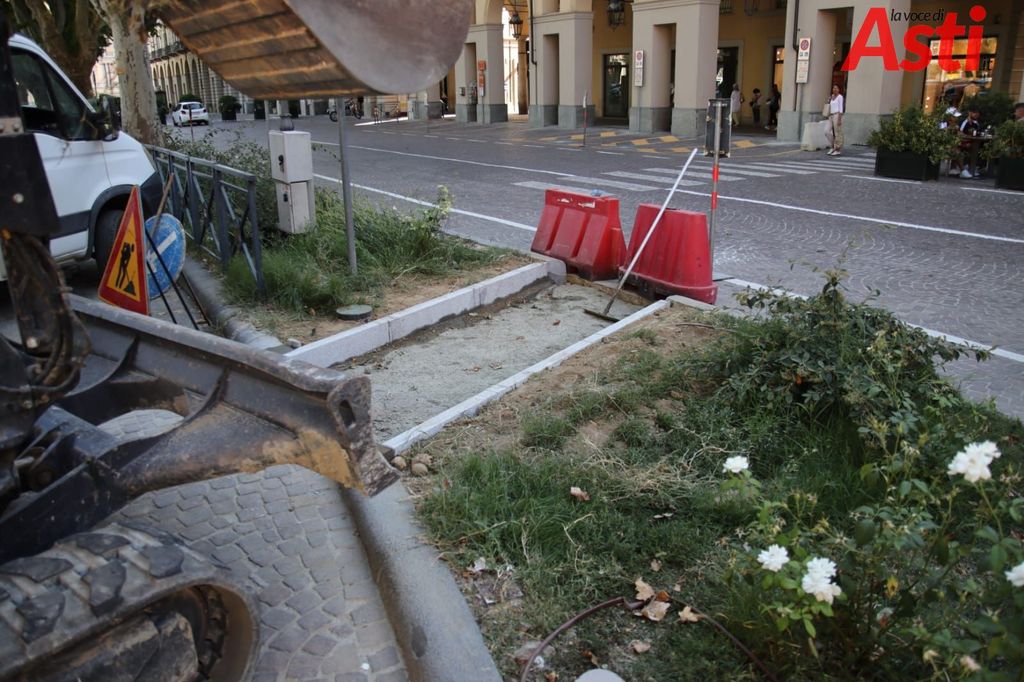 In piazza Alfieri i lavori proseguono per modificare alcune aiuole che permettano così un passaggio più agevole dei pedoni che possano attraversare, sia all'inizio dei Portici Pogliani e a quello dei Portici Anfossi (altezza Cocchi e altezza Reale).