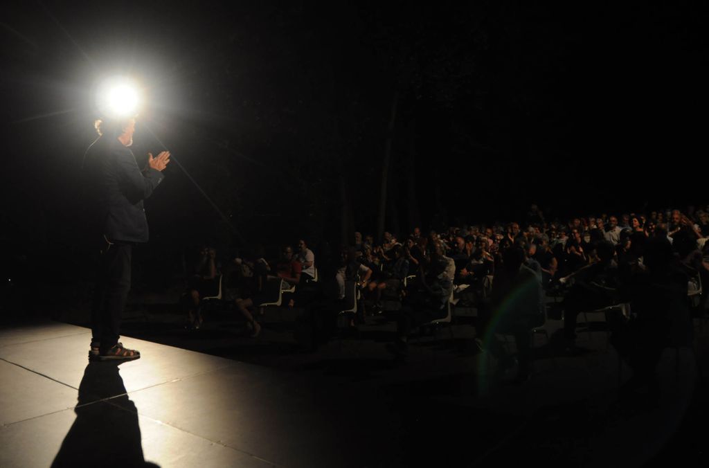 "Dal belvedere a fianco del Municipio, con l’affaccio sulle colline di vigneti castagnolesi e l'ampio paesaggio, un evento speciale: dopo i lunghi mesi di chiusura dei teatri, e più in generale di grandi privazioni sul piano delle relazioni personali, una festa, una celebrazione gioiosa dello stare insieme in quel modo unico che il Teatro offre da sempre" spiegano gli Acerbi