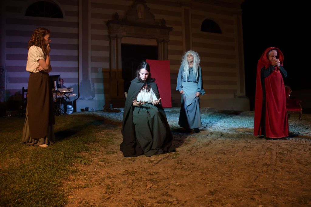 La rappresentazione scenica è affidata a Monica Massone nella veste di una delle accusate e a Paolo La Farina nella parte dell’Inquisitore. Michela e Marta Marenco rappresentano la voce popolare dell’accusa.