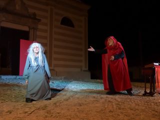 La rappresentazione scenica è affidata a Monica Massone nella veste di una delle accusate e a Paolo La Farina nella parte dell’Inquisitore. Michela e Marta Marenco rappresentano la voce popolare dell’accusa.