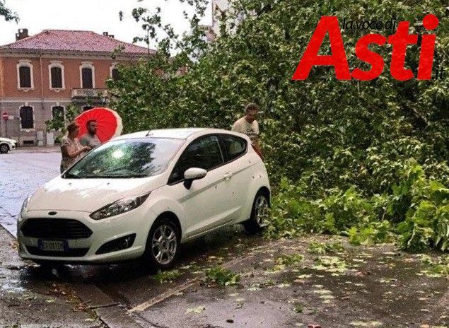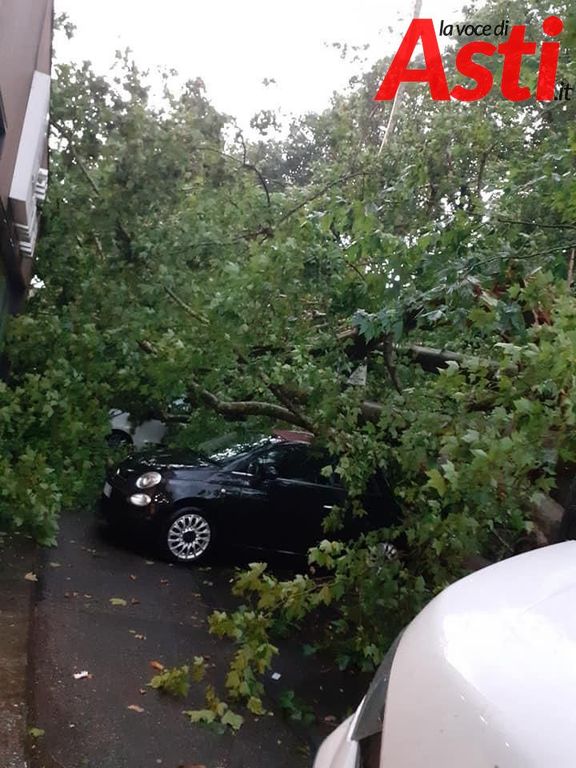 Il maltempo flagella anche Asti: un albero è caduto su un furgone in via Rosselli